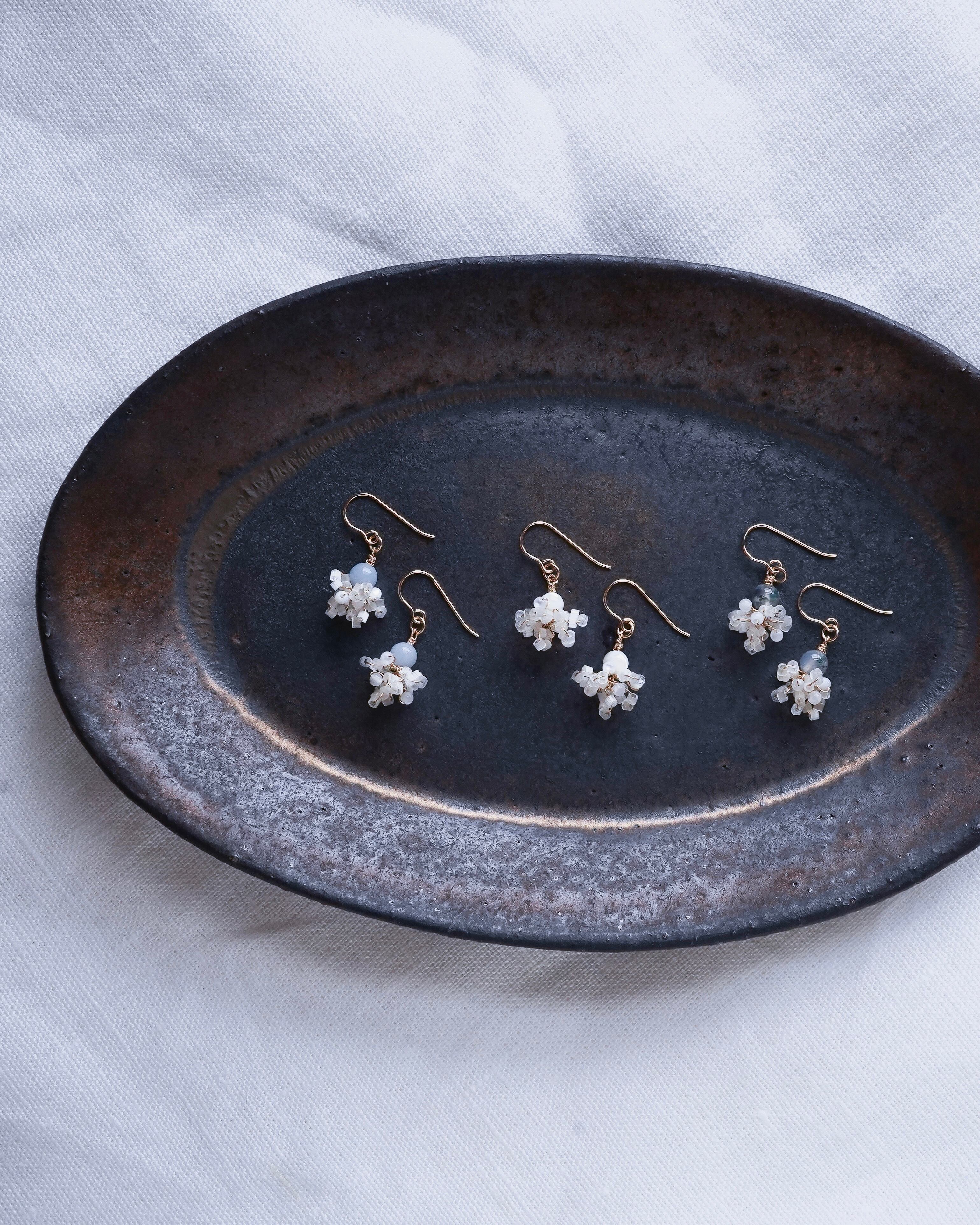 木漏れ日の光のようなホワイトシェル、青空のようなエンジェライト、森の中をそよぐようなモスアゲート。