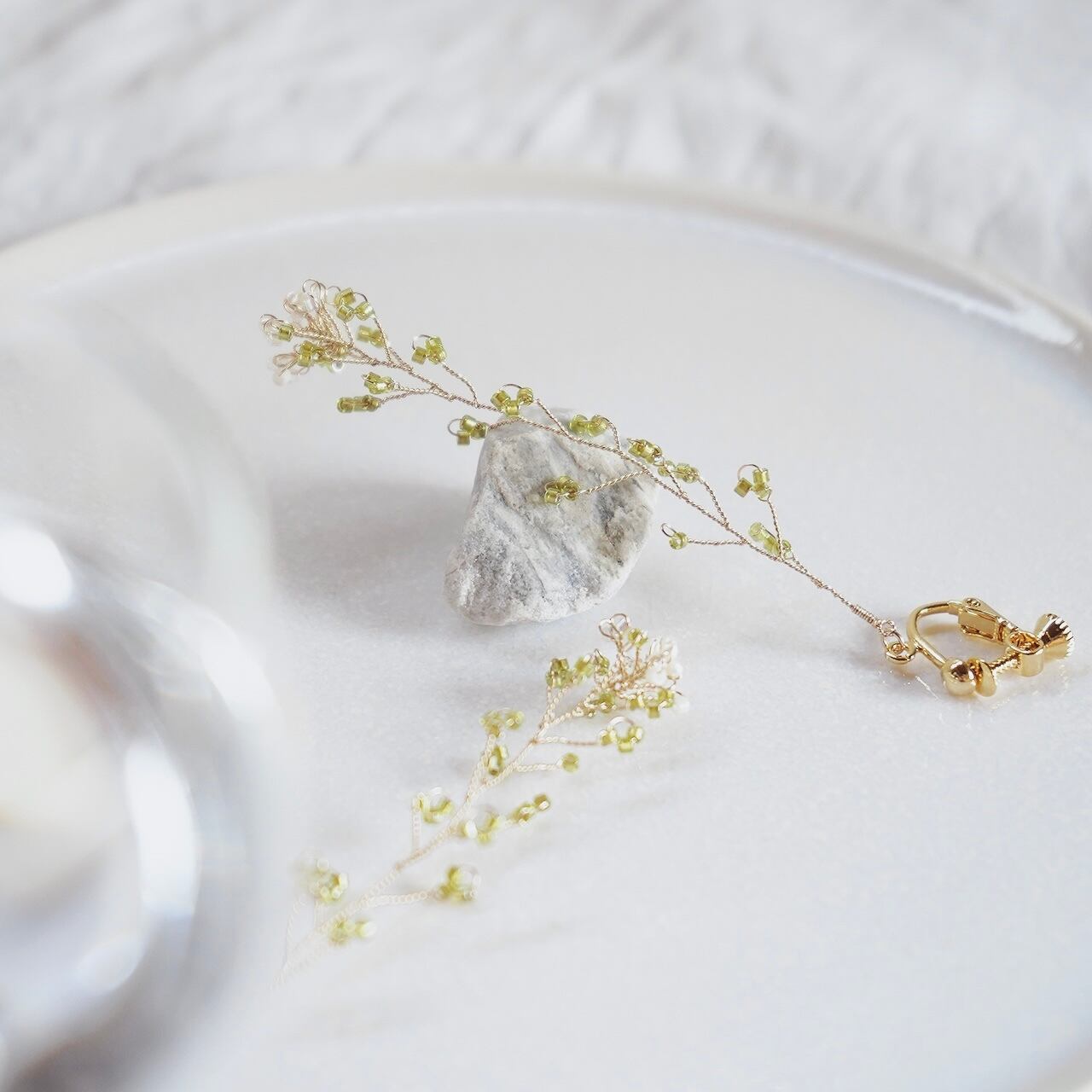 360°立体感のあるつくりで、まるで本物のなずなを耳元に添えているようなアクセサリーです。