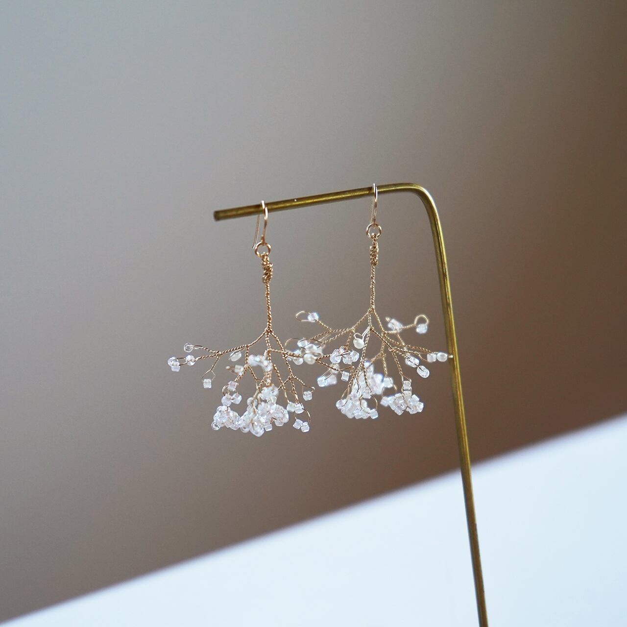 一つ一つのパーツが生み出す繊細な揺れ感が視線をひきつける耳飾りです。