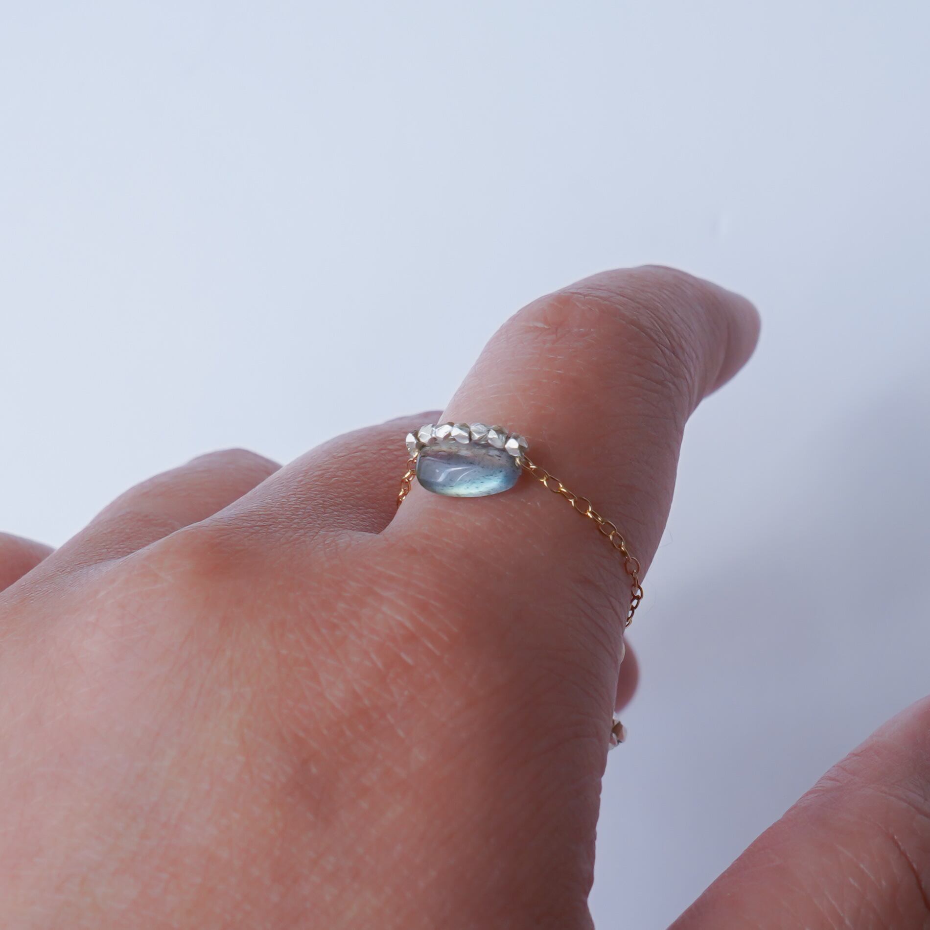 ラブラドライトは、一見するとグレー系の落ち着いた色味です。