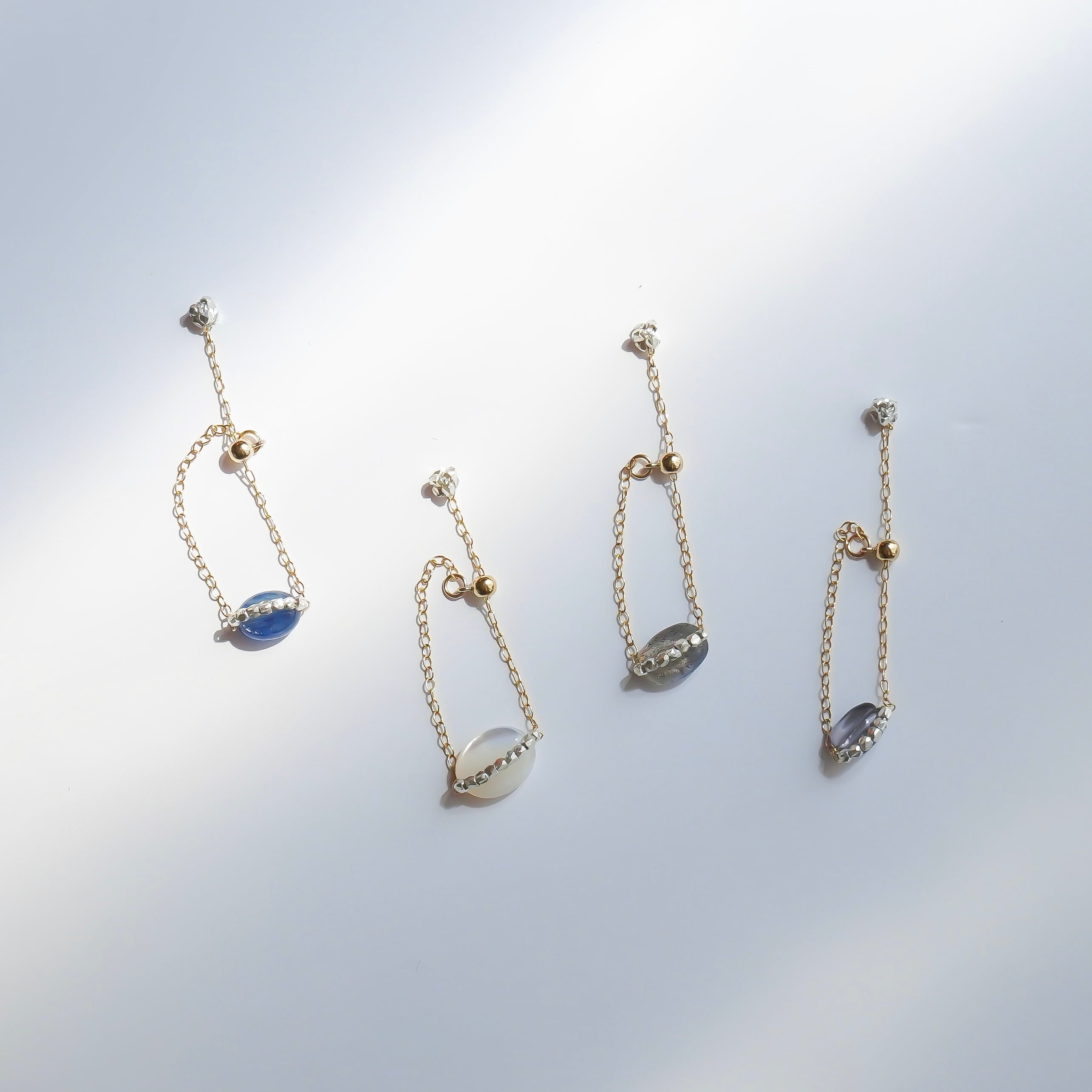 カイヤナイト、ホワイトシェル、ラブラドライト、アイオライトです。
