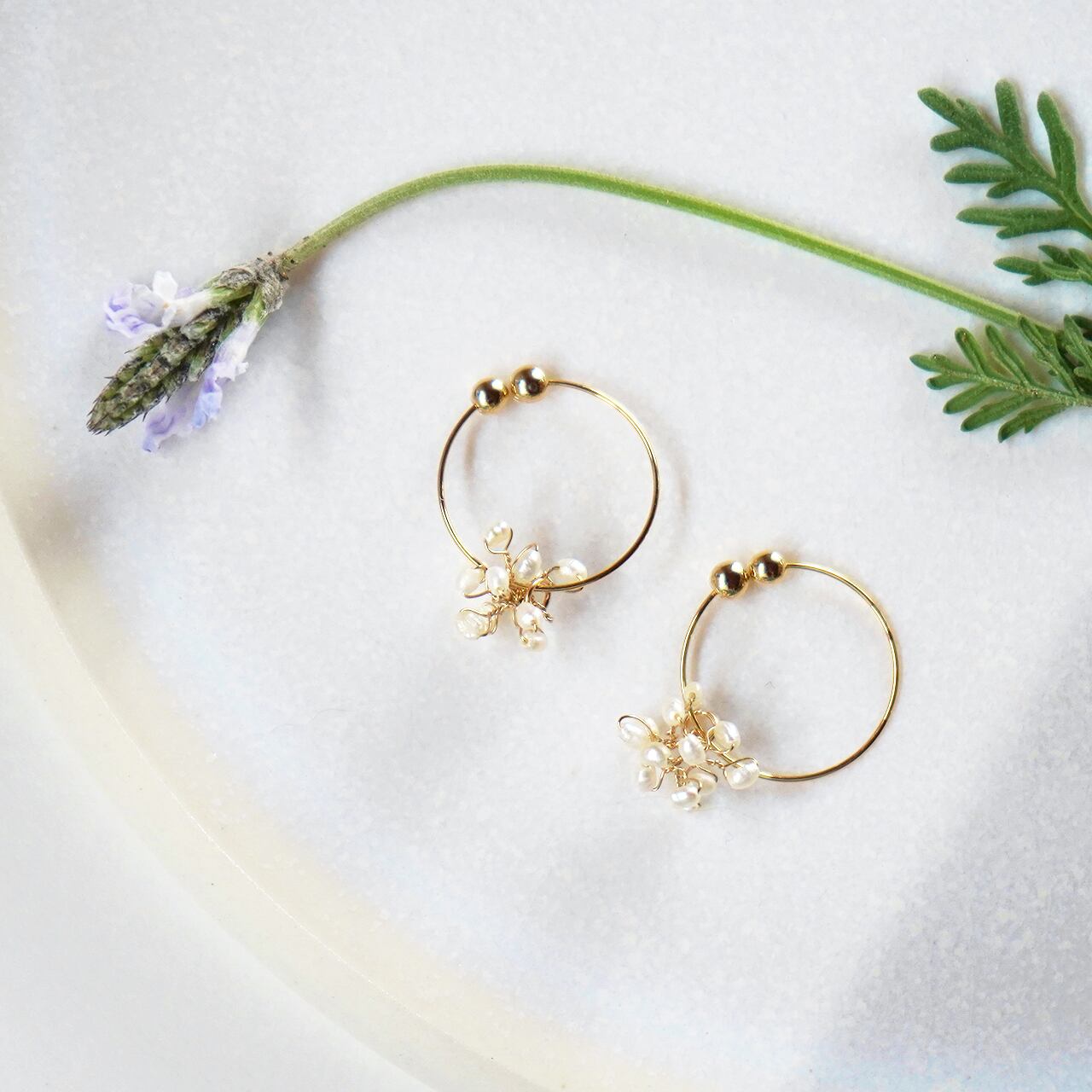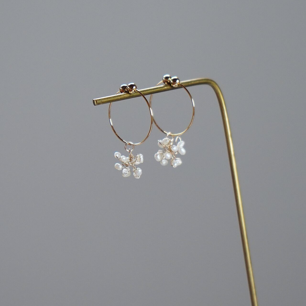 「スノーベリー」の実をモチーフに、小さな淡水パールで仕立てた耳飾りです。
