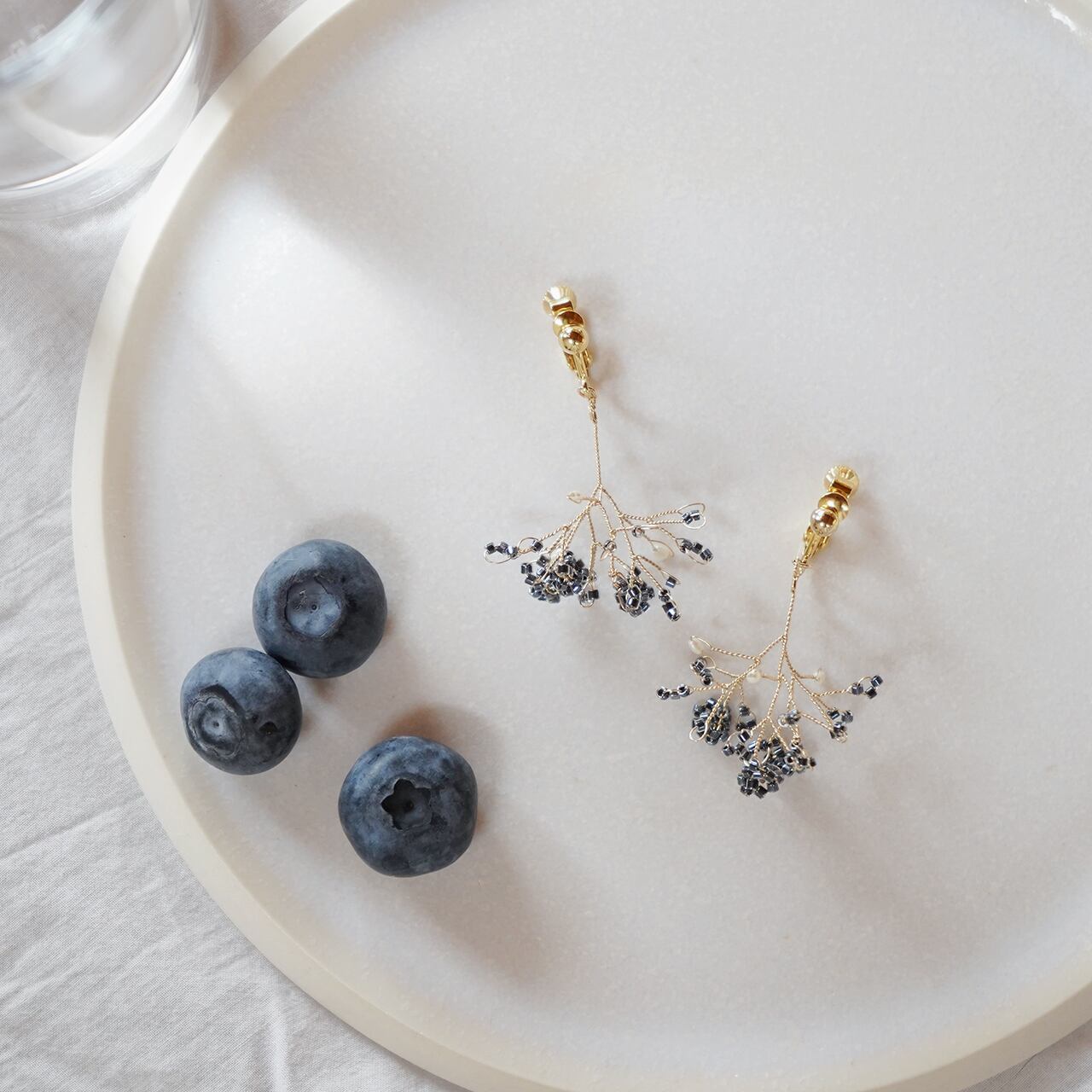 小さなかすみ草 イヤリング ピアス / Blueberry ネイビー