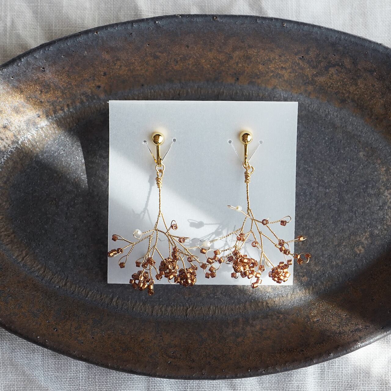 小さなかすみ草 「黄昏」 ブラウン イヤリング ピアス