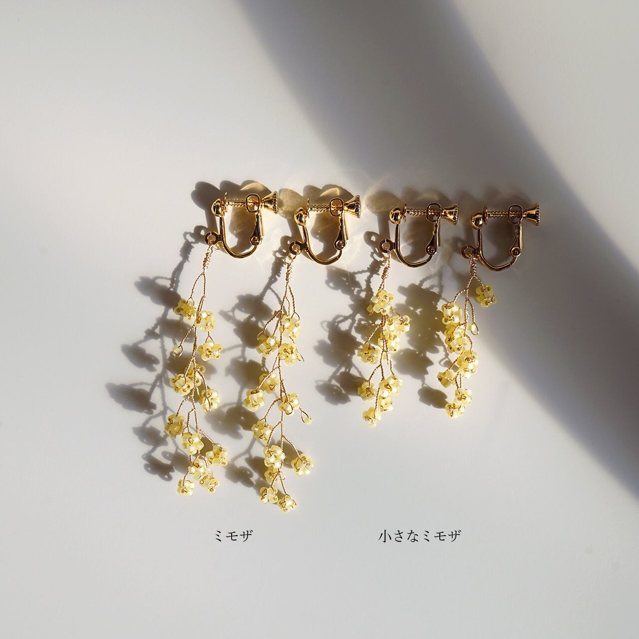 ミモザ 「開花」 黄色 イヤリング ピアス