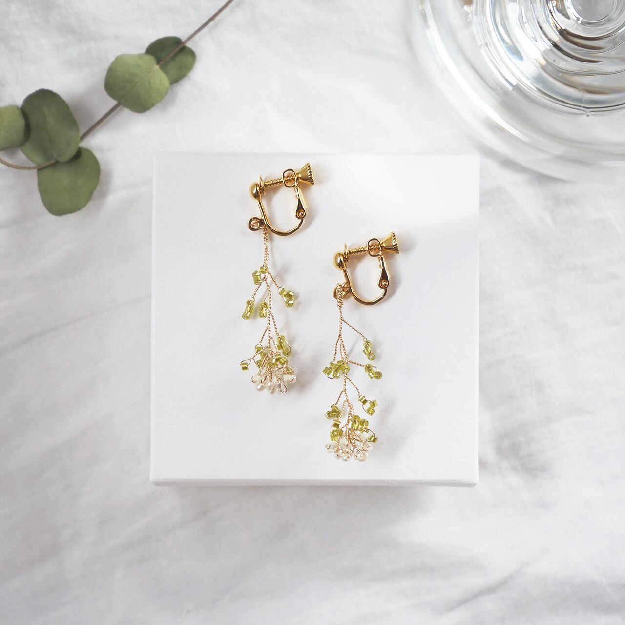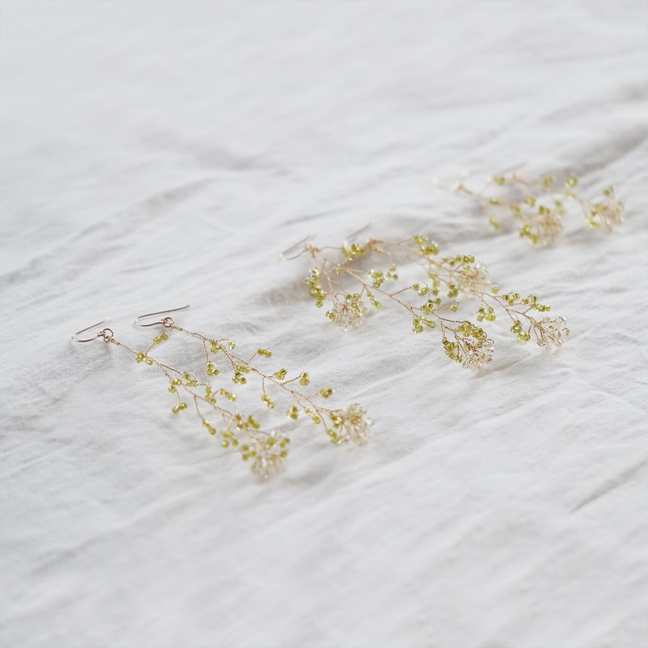 360°立体感のあるつくりで、まるで本物のなずなを耳元に添えているようなアクセサリーです。