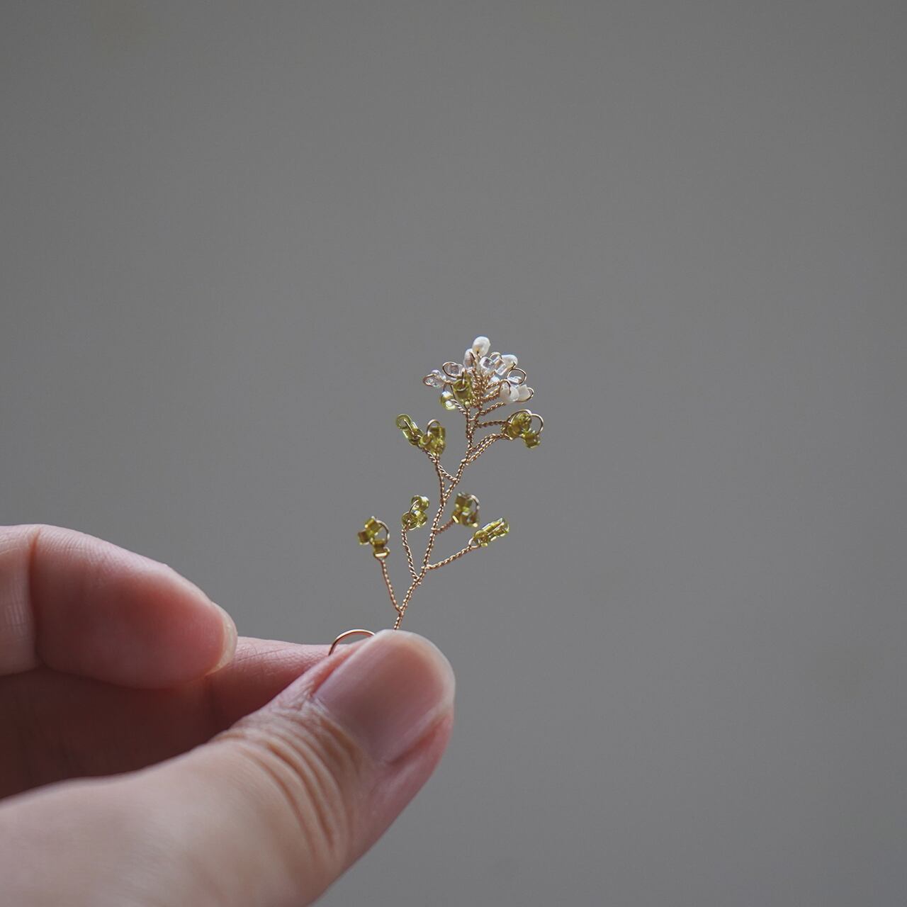 春を告げる身近な草花として愛されてきた「なずな」をビーズとワイヤーで仕立てました。