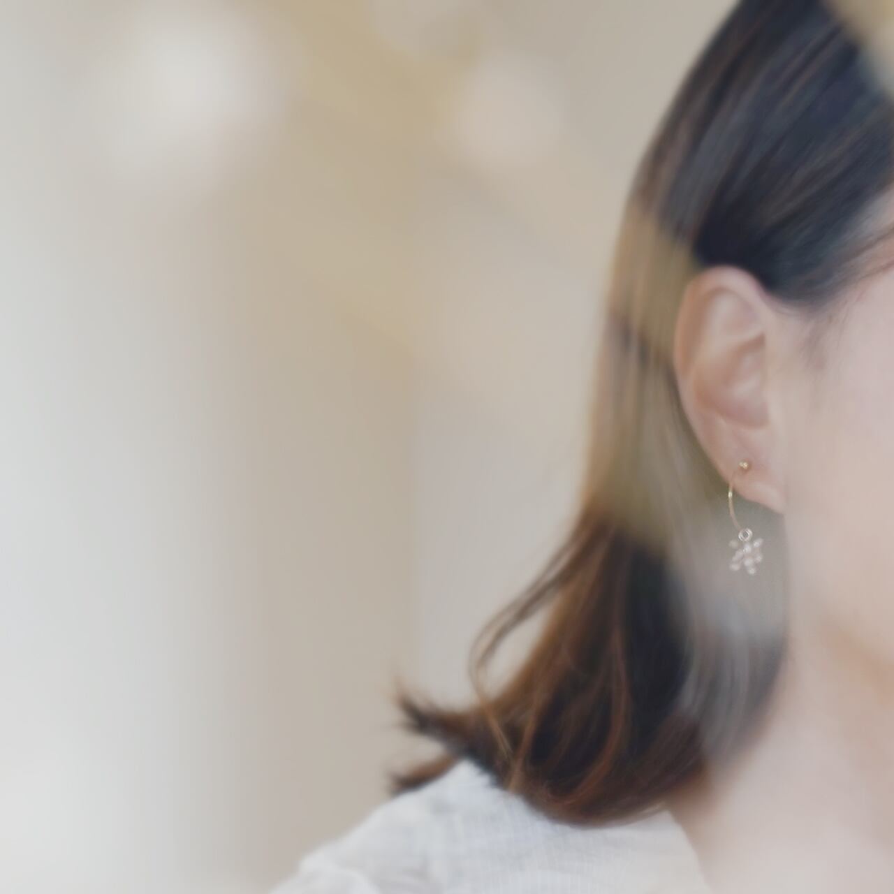 そんな愛らしい姿に魅了されモチーフに選び、シンプルな耳飾りに仕立てました。