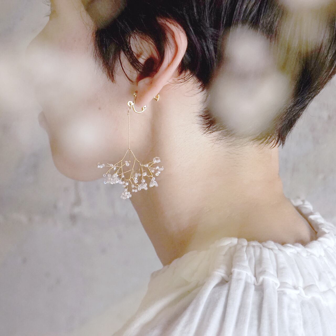 「かすみ草」をモチーフにした、nanukaの代表的なイヤリングです。