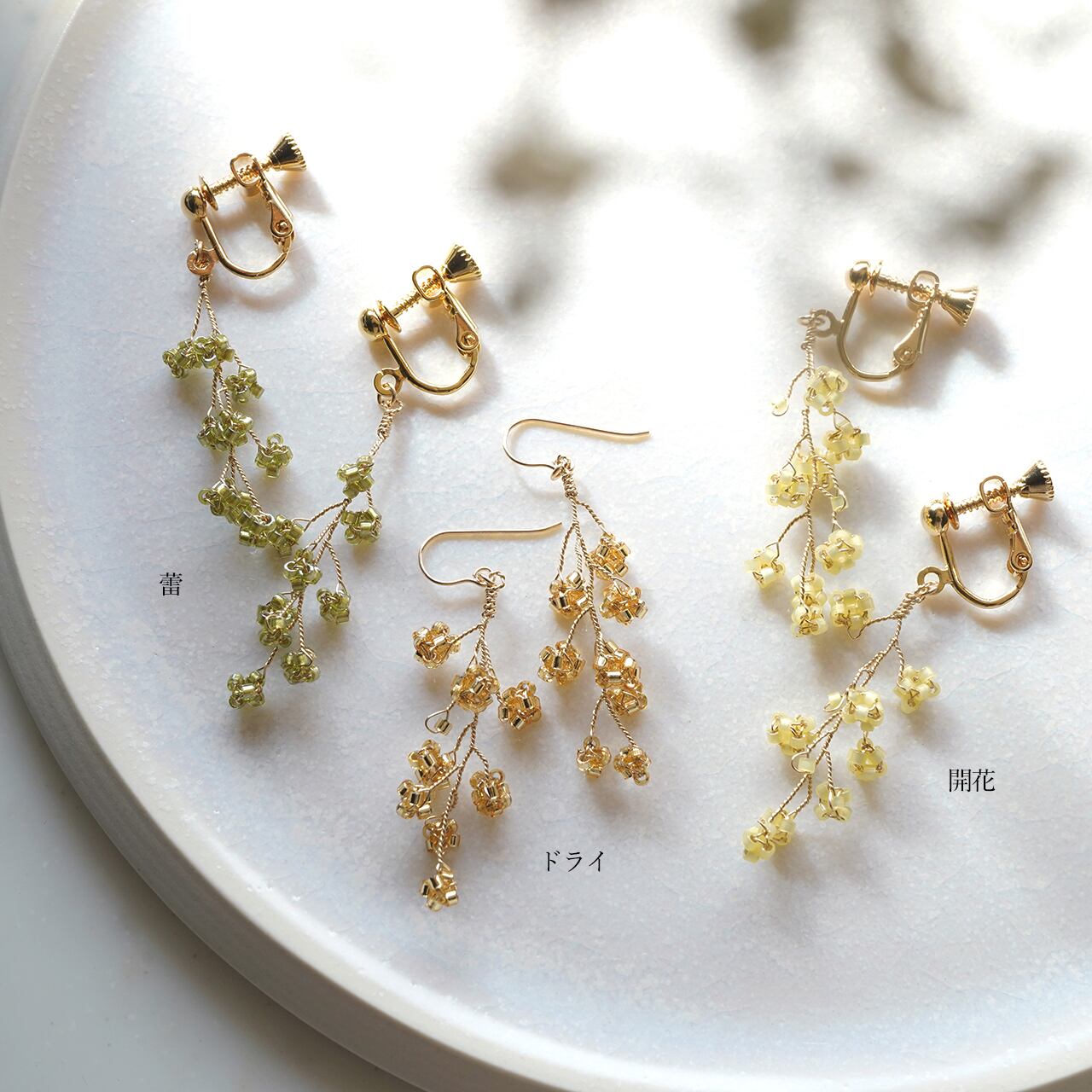 ひとつひとつの小花が独立してチラチラと揺れるイヤリング/ピアスです。