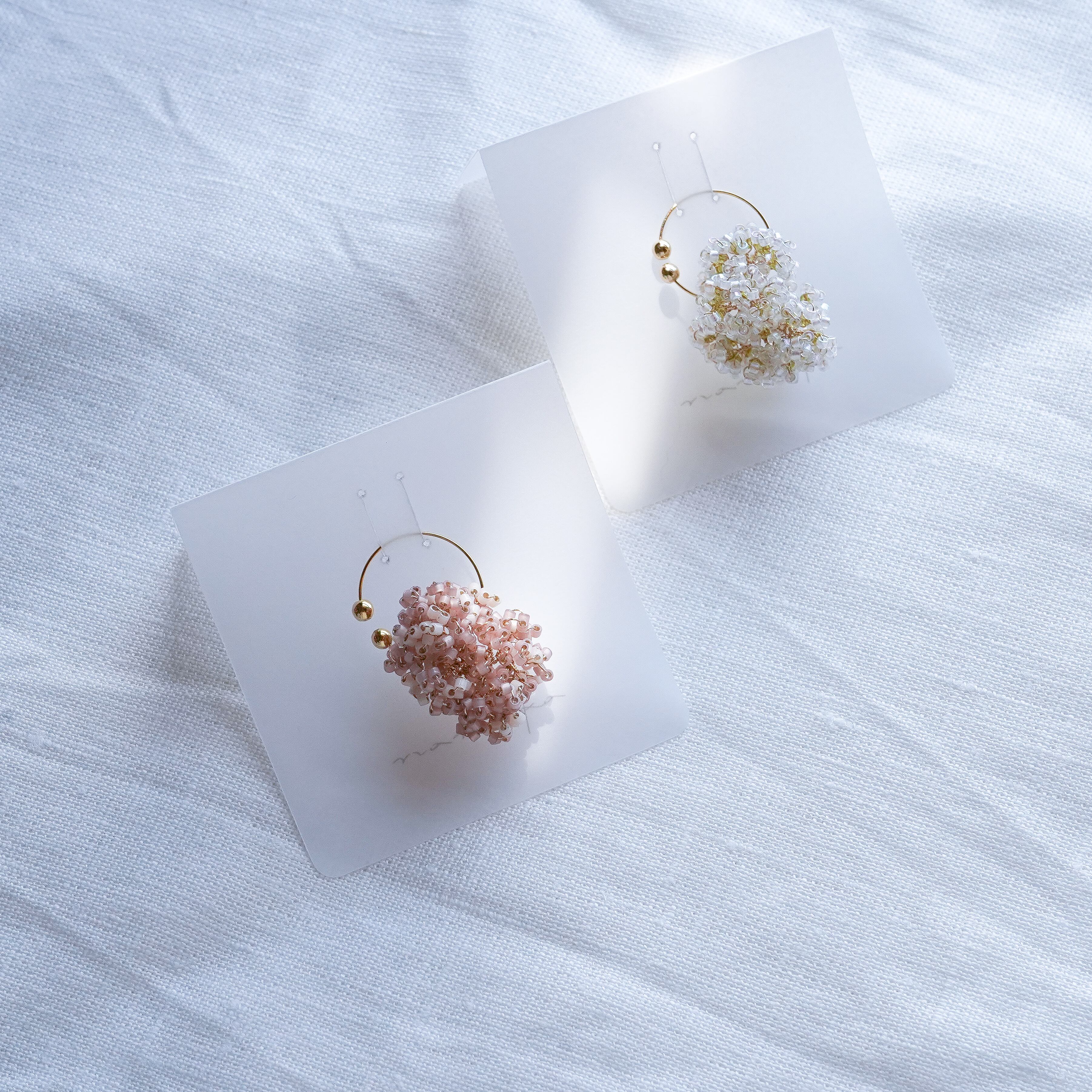 こちらは大きめの「ピンクアナベル」をイメージした優しいピンク色のビーズで仕立てました。