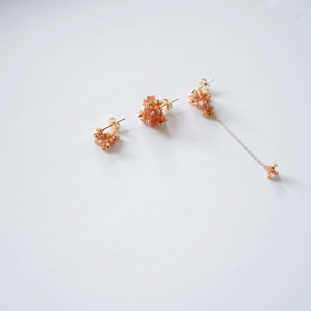 銀木犀の花弁をビーズでかたどって、耳元でささやかに揺れる3つのデザインで表現しました。